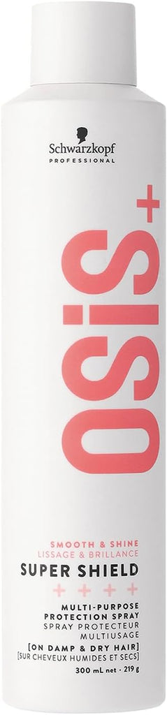 Keep your hair protected and smooth with Schwarzkopf Osis+ Super Shield Multi-Purpose Protection Spray. This lightweight 300ml spray defends against heat styling, pollution, humidity, and frizz while adding a natural shine. Ideal for all hair types, it creates a protective barrier without weighing your hair down—perfect for everyday styling.