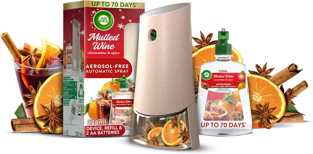 Bring the warmth of the holidays into your home with the Air Wick 24/7 Active Fresh Autospray in the limited-edition Mulled Wine scent.