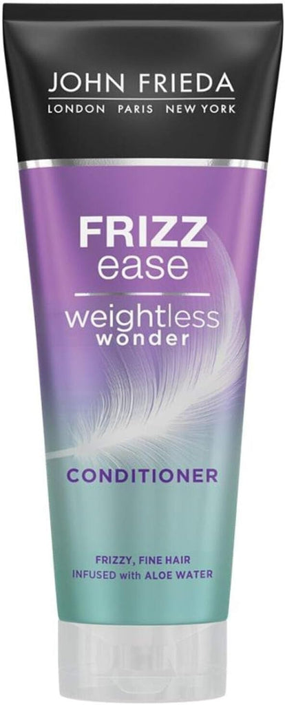 Tame frizz without losing volume with John Frieda Frizz Ease Weightless Wonder Conditioner. Specifically formulated for those with fine, frizzy hair, this conditioner provides the essential hydration your hair needs without the heavy buildup that usually weighs fine hair down.Part of the Weightless Wonder range, it works to smooth the hair surface and detangle knots for a soft, sleek finish.Key Features & Benefits: