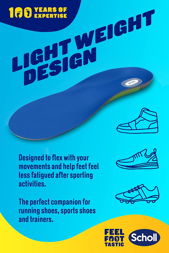 - HEEL, KNEE & ANKLE SUPPORT: Reduce the strain of running, exercising and everyday activities with a supportive women’s foot insole from Scholl. Our Sport Insoles are designed to fit athletic footwear and with maximum cushioning to protect your heels, knees and ankles from pain and pressure.