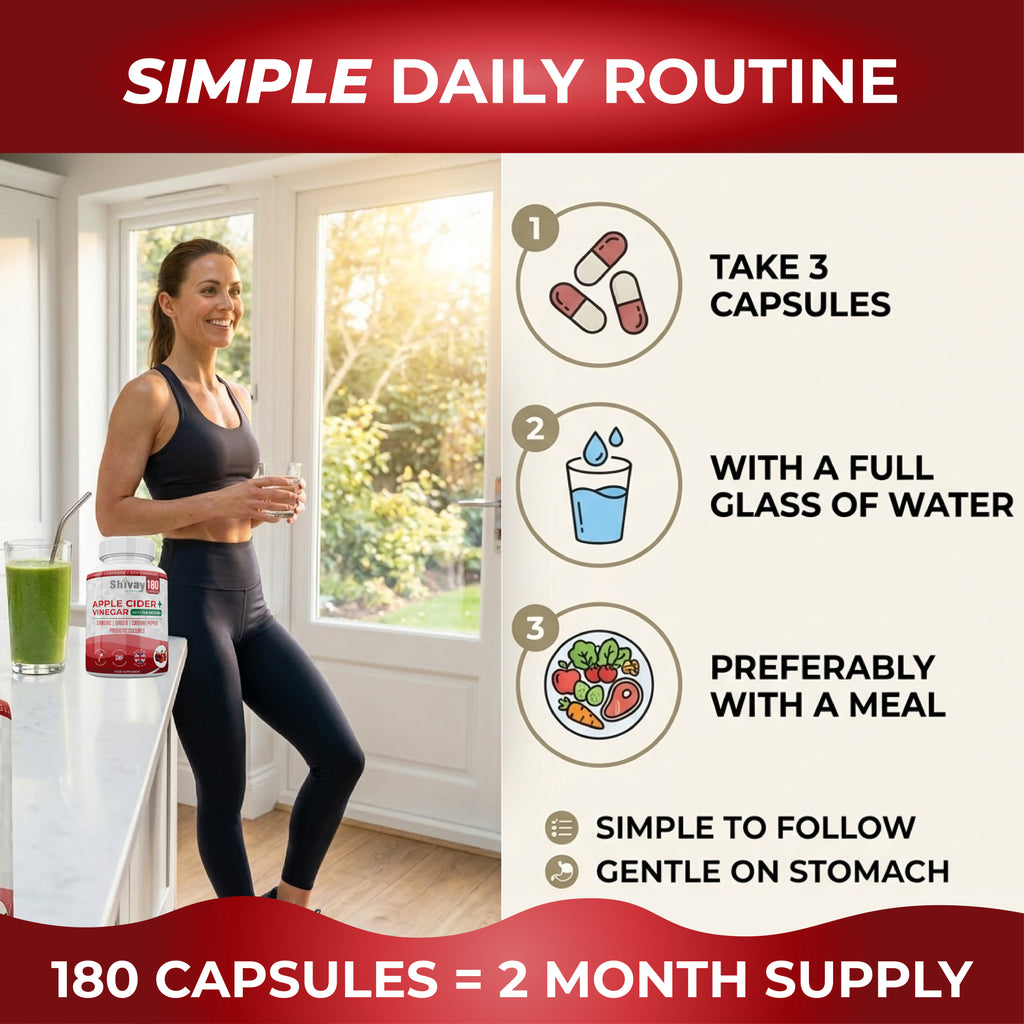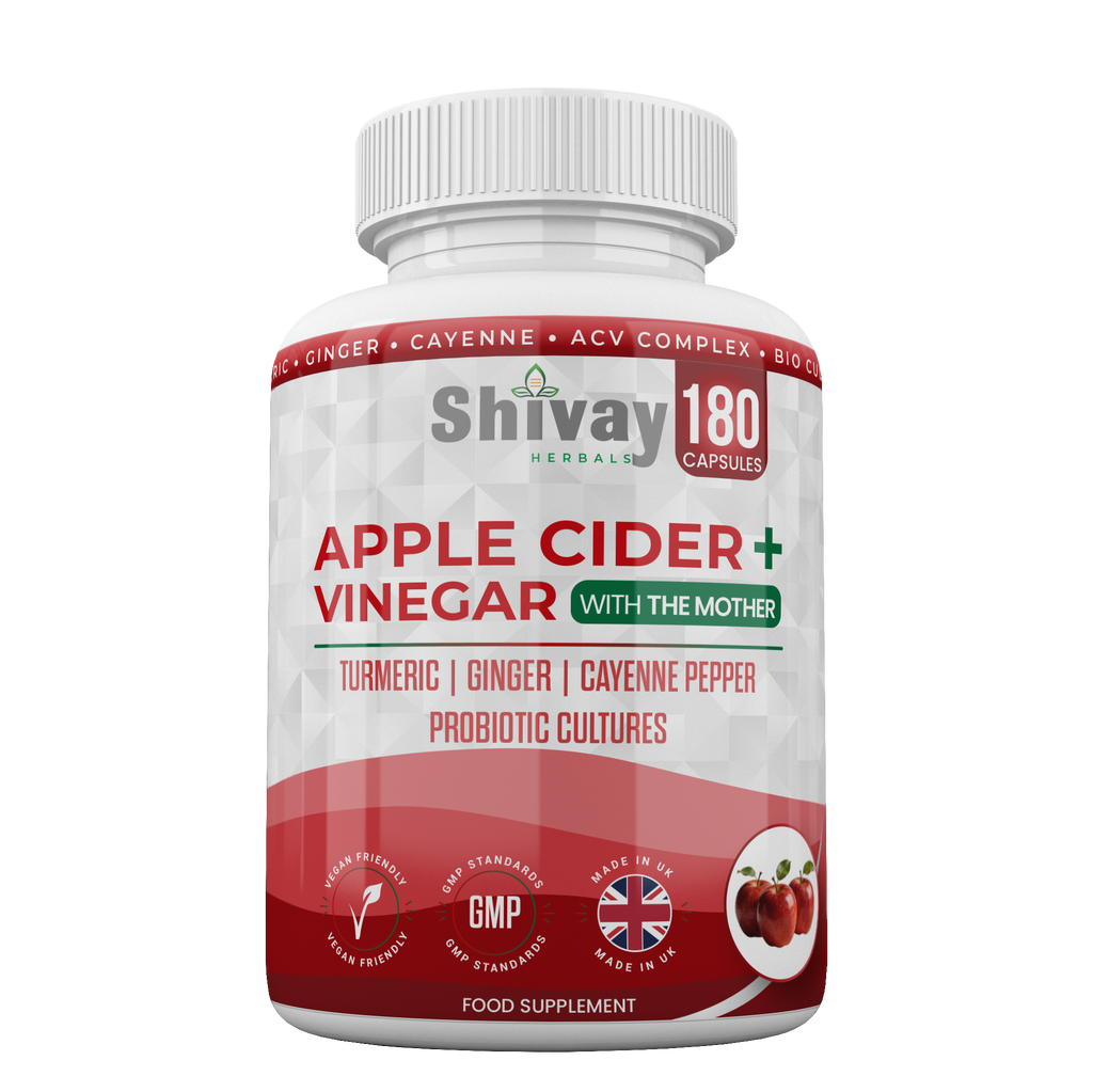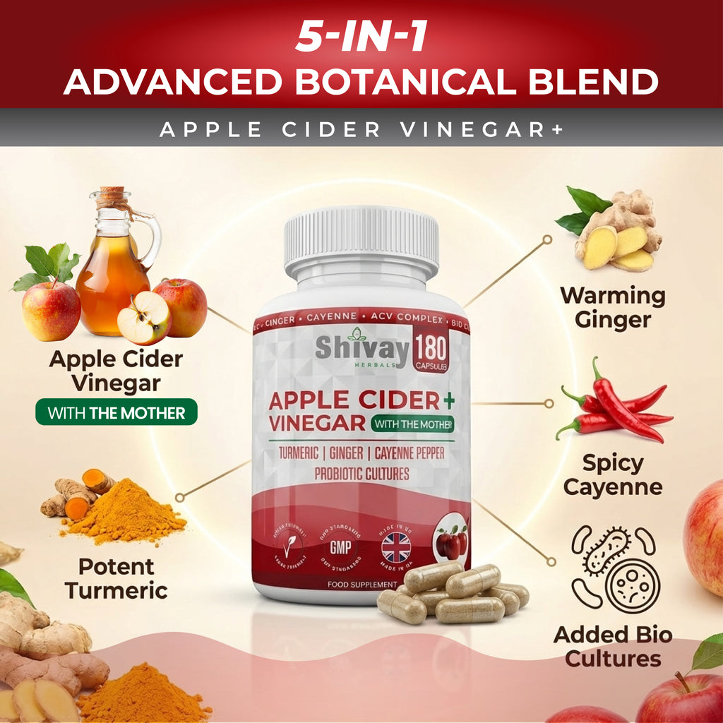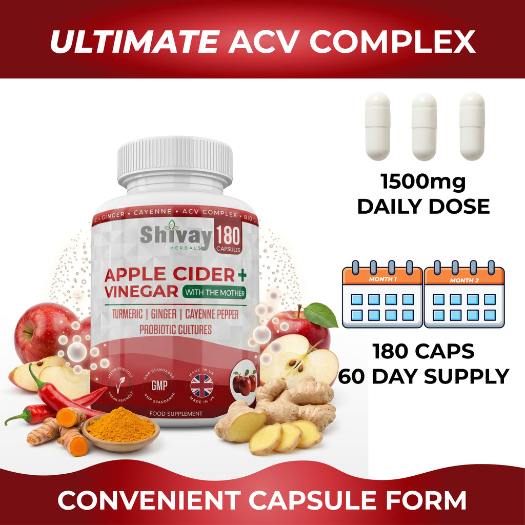 Shivay Herbals Apple Cider Vinegar Complex with The Mother 180 Capsules - 1500mg ACV per Serving with Turmeric, Ginger, Cayenne & Bio Cultures