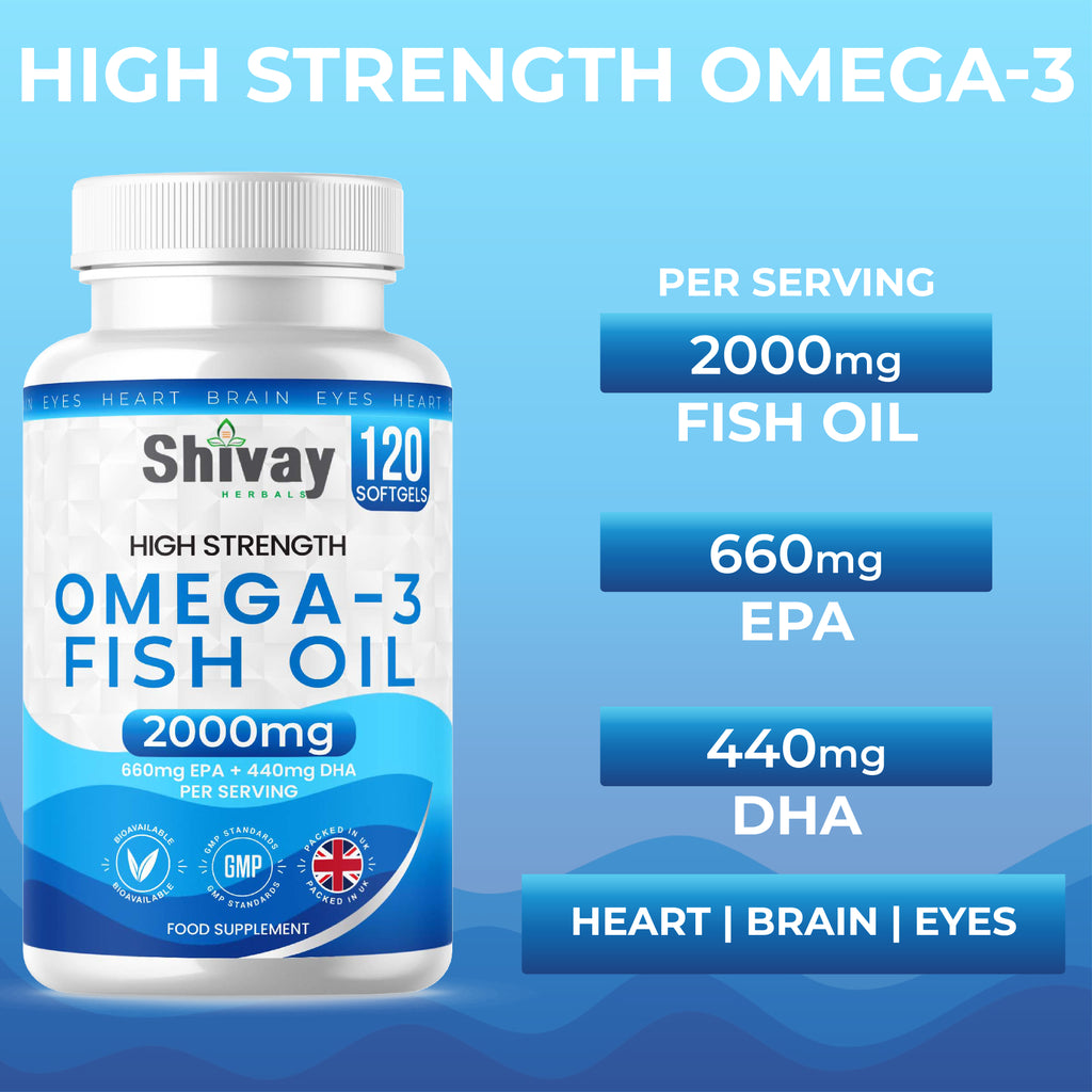 Shivay Herbals Omega 3 Fish Oil - High Strength 2000mg - 660mg EPA 440mg DHA per Serving